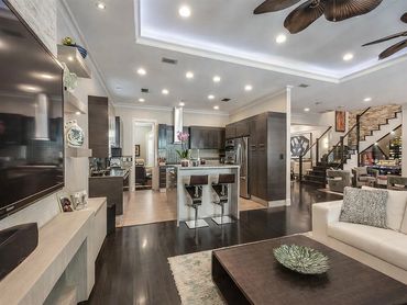 The home features a gourmet kitchen, a sunken bar with custom liquor and glass display, and a temperature-controlled 650-bottle wine cellar. Seamless indoor-outdoor living is highlighted by an expansive outdoor entertaining area complete with a summer kitchen, pool, waterfall, spa, and fire pit. Integrated audio and automated lighting enhance the home’s comfort and convenience.